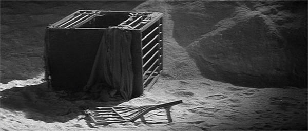 Don’t, however, expect at this point to get a clear look at it yourselves! The famous publicity shot of the dead Yeti bound on the sled is exactly that: no such shot appears in the film itself. Instead, we see only a single outflung arm, as the men comment of the creature’s height, and weight, and appearance; Rollason is greatly struck by its face…