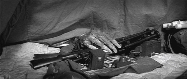 Friend’s first impulse is to send Kusang for the rifles (Rollason, perhaps in the shock of the moment, makes no protest). They are inside the tent, where McNee lies in a strange, trance-like state—emerging from it only when a huge, hairy hand reaches beneath the tent-flap, and begins inspecting the weapons…