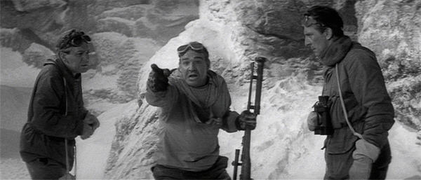 This is the strength of Nigel Kneale as a writer, of course. John Rollason is the film’s hero, our identification figure—but he’s not perfect. Appalled as he is by the company in which he finds himself, he still feels the need to vindicate himself and his theories; he still puts finding the Yeti ahead of the consequences if they do find it.