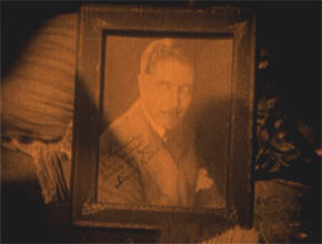 The studio-imposed use of sound effects in The Last Warning is confined to the opening sequence (as were the dialogue sequences). In contrast, one of Paul Leni’s own artistic choices, one which recurs throughout the film, is a clever re-working of the intertitles. This is an approach that the director also used in The Cat And The Canary, to avoid the monotony of the conventional card, to enhance the information being communicated, and occasionally just to amuse.