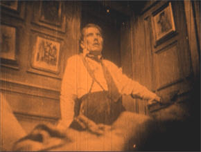 The silent version, it seems, no longer exists (although there are rumours of a French print); the partial talkie does, but only in film archives. For decades, this was the only version at all available to the public, and that only in most occasional of revival screenings—until a single print of the film mysteriously turned up on video tape some years ago. This turned out to be version number two, with sound effects but no dialogue; and this remains the only version of The Last Warning that is readily accessible by the public.
