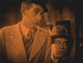The usual stock-types are all present – we recognise Tommy the electrician and his assistant, Buddy, as the Odious Comic Relief the moment we lay eyes on them, likewise Gene, Woodford’s, ahem, eccentric secretary; while Carrie Daumery’s Barbara Morgan is the Contractually Obliged hysterical spinster – and so is the usual tiresome schtick: people sneaking around inexplicably so as to terrorise their fellows, hands reaching slowly around doors for no readily apparent reason, supposedly sensible people reacting to walking into a cobweb with shattering screams, and so forth. And for those of you who thought that crude bodily humour was a recent addition to the world of cinema, think again: in The Last Warning Paul Leni makes history of a most dubious kind by stooping to a fart joke – in fact, a series of them – as Barbara Morgan is repeatedly shocked by the noises issuing from a bubbling water-cooler: the inference being, she thinks that they’re issuing from herself. It goes without saying that this sequence is in the silent portion of the film: you can hardly imagine Leni getting away with an accompanying sound effect!
