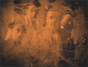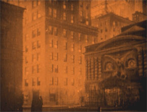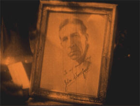 The studio-imposed use of sound effects in The Last Warning is confined to the opening sequence (as were the dialogue sequences). In contrast, one of Paul Leni’s own artistic choices, one which recurs throughout the film, is a clever re-working of the intertitles. This is an approach that the director also used in The Cat And The Canary, to avoid the monotony of the conventional card, to enhance the information being communicated, and occasionally just to amuse.