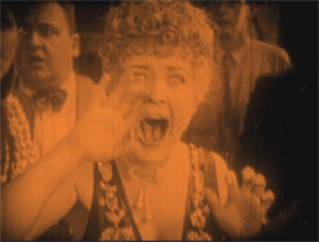 The usual stock-types are all present – we recognise Tommy the electrician and his assistant, Buddy, as the Odious Comic Relief the moment we lay eyes on them, likewise Gene, Woodford’s, ahem, eccentric secretary; while Carrie Daumery’s Barbara Morgan is the Contractually Obliged hysterical spinster – and so is the usual tiresome schtick: people sneaking around inexplicably so as to terrorise their fellows, hands reaching slowly around doors for no readily apparent reason, supposedly sensible people reacting to walking into a cobweb with shattering screams, and so forth. And for those of you who thought that crude bodily humour was a recent addition to the world of cinema, think again: in The Last Warning Paul Leni makes history of a most dubious kind by stooping to a fart joke – in fact, a series of them – as Barbara Morgan is repeatedly shocked by the noises issuing from a bubbling water-cooler: the inference being, she thinks that they’re issuing from herself. It goes without saying that this sequence is in the silent portion of the film: you can hardly imagine Leni getting away with an accompanying sound effect!