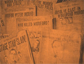 Upon clutching the candlestick, reports the doctor in attendance, Woodford screamed and collapsed. Another complicating factor is the chloroform dripping onto the stage. The police investigation then commences, and suspicion immediately falls upon leading lady Doris Terry and/or the director, Richard Quayle, who, upon the reluctant testimony of stage manager Mike Brody, had a violent quarrel with John Woodford in Doris’s dressing-room shortly before the performance.