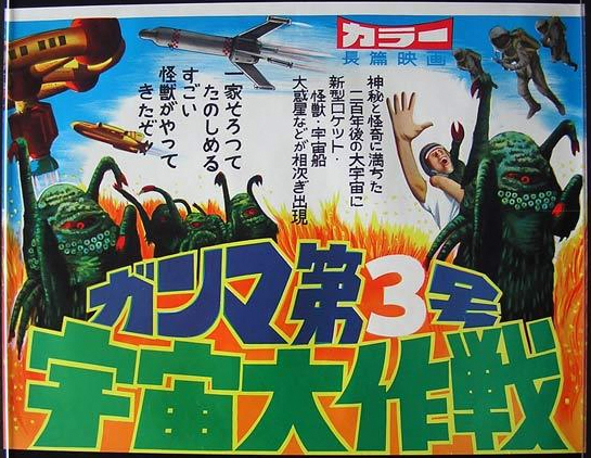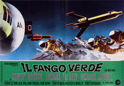 It isn’t quite clear what happened next. It seems that plans were made for a fifth Italian-produced film, but instead – though again funded again MGM, and still co-produced by Walter Manley and Ivan Reiner, and co-written by Reiner and William Finger – the film was shot entirely in Japan, at Toei, with a Japanese director, special effects team and crew, and a Caucasian cast—and with the name of the space station changed to ‘Gamma 3’. Originally called Ganmā dai 3-gō: Uchūdaisakusen (Gamma No. 3: Space Division) in its country of origin, in the west the film is known – and by some of us, adored – as The Green Slime.