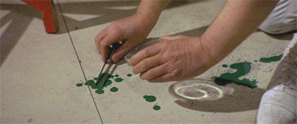 “I suggest you bone up on your regulations,” he snarls at Elliott, who gives him a look which suggests he’s contemplating a retort that will also feature the words “bone up”. He says nothing, however, and the men – including the one with the splashed suit – pass through the decontamination chamber. Rankin then takes himself and his gashed arm down to the infirmary, where a nurse offers to get a doctor for him. “Don’t bother,” he replies abruptly and strides off—leaving the nurse gazing after him with an expression on her face we might justly interpret as, “What a DICK!”—