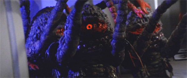 What follows is a wonderfully terrible combination of obvious wire-work, third-rate bluescreen effects and monster suits, as Elliott and the others swoop around outside the station blasting creatures and trying to force them off the hatch.
