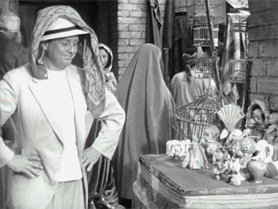 The negotiations are overheard by the beggar from the marketplace, who turns out to be a follower of Karnak. (So I guess it’s okay that Babe was rude to him, huh?) He instigates a brawl, presumably in the hope of landing one or all of the Americans in trouble with the local police. This failing, the beggar reports to Andoheb, with the result that Marta Solvani, or Sullivan, is interrupted in the midst of packing for her father and herself by a visit from the professor himself. Andoheb warns her that there are dangerous con-artists operating in Cairo, who convince strangers to back phony expeditions and then, after pocketing their money, lead them into the desert and murder them.