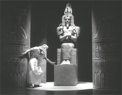 Yeah, very interesting to see how the “modern girl as reincarnation/double of the princess” angle has been dropped completely. I wonder why – not enough time? Thought to be not interesting enough? Not really compatible with the mummy as an automaton?