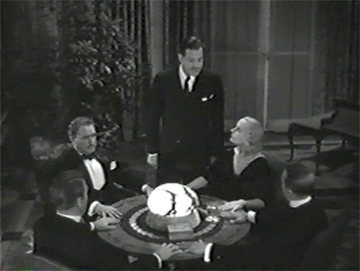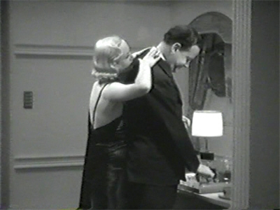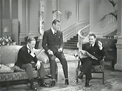 At this critical moment the butler rushes in to announce his fear that Hammond is dying. As Grant and Houston hurry out, Bavian remarks drily, “I think I’d better go.” “Yes,” purrs Roma. “Let’s both go.”