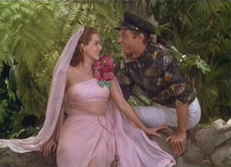 (For the record, Maria Montez was born in the Dominican Republic of a Spanish father and a Dutch mother, and Jon Hall in California of an American father and a Tahitian mother; both of them thus sufficiently “exotic” in the eyes of white-bread Hollywood to be condemned to spending their careers trapped in sarong-draped epics like this one.)