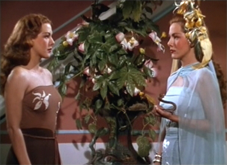 But just because I have trouble parking my brain in neutral, that’s no reason why you should. Because Cobra Woman is, indisputably, fairy-floss; fairy-floss par excellence; a glorious example of Hollywood film-making at its most flimsily fabulous. Don’t think about it: just settle back and let your eyeballs and your sense of humour feast.