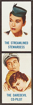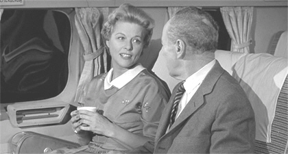 It’s very suggestive of the way stewardesses were thought of and treated in the movies (and real life) of this era that everyone else in a box has an actual (stock) personality trait, but the stewardess is just “streamlined.”