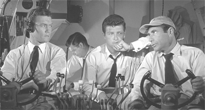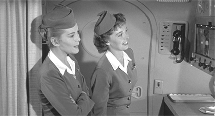 Although she received second billing, Nancy Davis really only has a supporting role in Crash Landing: apart from these scenes, we get one quick glimpse of her as the crisis is unfolding, and she makes one more brief appearance right at the end. This was actually Davis’s last theatrical film, although she continued to work in television until 1962.