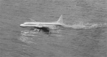 Footnote:  The crew of the USCGC Pontchartrain didn’t only assist with the rescue of passengers from the ditched Pan Am Flight #6: they filmed the entire episode. The footage was later released as a short documentary, and is available on YouTube. Still frames were also reproduced in magazine and newspaper coverage of the incident; while Crash Landing itself uses snippets of the film during its reproduction of the scene (which is why the picture quality suddenly drops).