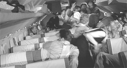 Williams, with his low opinion of humanity, favours the first option, of course. Ann and Nancy have already given the emergency instructions, and Smithback has visited the cabin to answer questions and reassure the passengers (as well as finding a moment to, uh, “reassure” Ann in a more personal way); but now Williams goes back to emphasise what is needed from everyone. It is also at this point that he instructs Nancy to bring all the passengers forward.