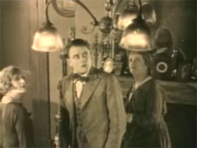 We cut then to the scene of most of the film’s action, and observe the intrusion into the Buntings’ small world of their mysterious Lodger. Ivor Novello’s contribution here is hard to assess. He succeeds, undoubtedly, in conveying the sense that the Lodger is a man at the very end of his tether, one struggling with a terrible personal burden; but in doing so, his acting is so very stylised and theatrical, throughout it teeters on the brink of – and intermittently tips over into – the realm of outright camp. While this is disconcerting for modern viewers, it does have the effect of marking the Lodger as a person apart, a loner in the most absolute sense.