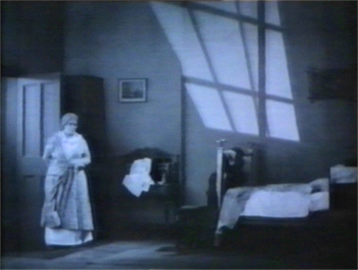 Equally striking is the use of chiaroscuro. The director’s apprenticeship in Germany had fired him with an admiration for the Expressionist cinema of that country, and for the work of F. W. Murnau in particular; and it shows in such sequences as that of Mrs Bunting’s night vigil. As she strains her ears to capture the soft sounds of her Lodger’s comings and goings, the unhappy woman is almost dwarfed by the ominous shadings of her own bedroom.