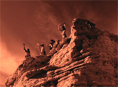 In the belief that they have been led to Mars for a reason, the crew lands on the planet and sets out to explore. This is the most fondly remembered aspect of Rocketship X-M, in which a touch of the mysterious is given to the overly familiar locations of Death Valley and Red Rock Canyon through the simple – and inexpensive – expedient of shooting everything through a red filter. And this is also where this low-budget, essentially commercial production wins itself a slice of immortality: for our space travellers make a discovery on Mars, that of a ruined civilisation, its crumbled remains covered in a pall of radioactivity…