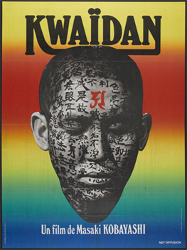 Though the original advertising art for Kwaidan gave equal emphasis to its various stories, today it is the image of Hoichi’s face covered in painted symbols that is most often associated with this film—and with good reason: in a film full of striking visuals, this one has a peculiar power.