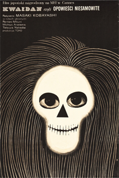 Synopsis: A narrator tells three ghostly tales… In The Black Hair, an impoverished samurai (Mikuni Rentarō) abandons his wife (Aratama Michiyo) to pursue his fortune alone. To obtain wealth and security, he marries the daughter (Watanabe Misako) of a prominent family, before entering the service of the governor of a distant province. However, the memories of his first wife and their life together poison his second marriage; and when his term of service is done he rejects his second wife to return to his original home. At first the samurai is frightened by the desolation that he finds there—but then he discovers his wife waiting for him, as if nothing had happened… In The Woman Of The Snows, a young woodcutter, Minokichi (Nakadai Tatsuya), and his elderly master are caught in a snowstorm, finding refuge in a boatman’s hut. During the night, Minokichi awakes to discover a spirit of the snows bending over his master, who is dead. As he cowers in terror, the spirit-woman (Kishi Keiko) tells him that she has decided spare his life. She warns him, however, that he must never speak of their encounter to anyone, or he will regret it… In Hoichi The Earless, a blind musician called Hoichi (Nakamura Katsuo) gains fame for his playing of the biwa and his recitations. One night, when he is alone in the temple where he finds a refuge, Hoichi is approached by a samurai (Tanba Tetsurō), who tells him that his fame has reached a certain noble family. Night after night Hoichi accompanies the samurai and plays as requested—unaware of who he is really playing for… The narrator (Takizawa Osamu) is revealed as a writer of strange stories. He observes that many such stories have no real ending—for example, the one about Kannai (Nakamura Kan’emon), a nobleman’s guard who begins to see a reflection not his own in his cup of tea…