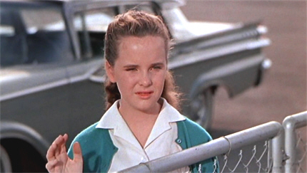 Immediately prior to his departure for Washington, Heath collects thirteen-ish Anne from her school and takes her out to lunch. And it is Anne who wins – or “wins” – the perverse privilege of a first instance of what is, of all of them, is The Crowded Sky’s most crass and annoying tic: a zoom-in close-up followed by a voiceover internal monologue, something employed here to the point of absurdity.