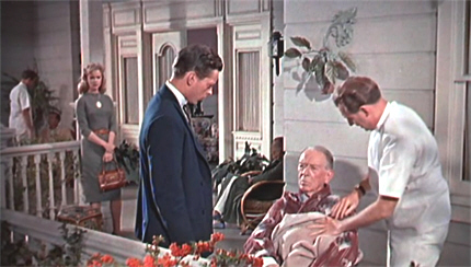 (The film backs this scene with a soft playing – tacitly through the dining-room speakers – of the famous theme from A Summer Place, which hadn’t been released when this started filming. Warners lucked out there: the film was a smash, briefly making a star out of Troy Donahue; so was its theme, which spent a good chunk of 1960 on top of the Billboard charts.)