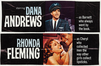 Synopsis: At a naval air station in San Diego, a young sailor named McVey (Troy Donahue) arrives to claim the single passenger seat on an eastbound jet, bumping an officer from the flight. However, when the latter hears that the jet is to be piloted by Commander Dale Heath (Efrem Zimbalist Jr), he gladly surrenders it—wryly wishing McVey good luck. The clerk explains to the alarmed McVey that, three years before, Heath was involved in a mid-air collision in which he manoeuvred to save himself; three men on a light bomber were killed. As he prepares for his flight to Washington, Dale Heath discusses the state of their marriage with his wife, Cheryl (Rhonda Fleming). An unhappy military wife, Cheryl is also a serial adulterer; however, Heath tells her he does not want a divorce: he believes in sticking to the jobs he takes on. Heath’s compensation is his teenage daughter, Anne (Karen Green), to whom he is devoted in spite of the long absences that are a necessary part of his duty. Anne reveals that she knows his new mission will see him based in Washington for flights to the Mediterranean, and confides that she wants to attend boarding-school in Washington, to be near him. When Heath mentions Cheryl, Anne comments bitterly that her mother won’t care… Seen off by Cheryl and Anne, Heath explains to a nervous McVey the rules of the air that will keep them both safe. McVey hesitates, then asks about the mid-air collision. Heath admits that while the B66 was at the wrong altitude, the collision was his own fault: he was remembering his service in Korea and, at the moment of emergency, responded as if in a combat situation. Heath then asks McVey if he still wants to fly with him? McVey says simply that he must get home… In Washington, First Officer Mike Rule (John Kerr) and his stewardess-girlfriend, Kitty Foster (Anne Francis), travel by taxi to the airport. Kitty tells Mike about the rest of the crew; he reacts strangely when he hears that the captain will be Dick Barnett (Dana Andrews). At that moment, Barnett is in the office of the head of Trans State Airlines, Joseph Bruce (Ed Prentiss), refusing an offer of a promotion to Operations Manager: he says flatly that he doesn’t want a desk job. As he goes to leave, Bruce tells him that there was a mix-up about the crew scheduling, and that his First Officer will be Mike Rule… The flight crew works out their route, noting expected rough weather over Abilene; Flight Engineer Louis Capelli (Joe Mantell) warns Barnett that the previous crew on their plane had trouble getting the nose wheel down and locked. As Barnett and Capelli leave to check the wheel, Kitty questions Mike about the obvious tension between himself and Barnett. Mike avoids a direct answer, saying only that though they were once friends and colleagues, these days Barnett hates his guts. However, despite these technical and personal issues, the flight is boarded and takes off without incident, its path direct to Los Angeles… Meanwhile, as his jet approaches Phoenix, Heath discovers that he has trouble with his radio, which is giving him only broken and uninterpretable transmissions from air-traffic control…