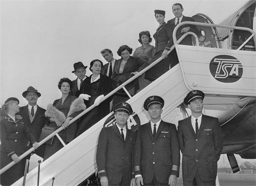Cheryl and Anne see Heath off from the air-base, the latter waving a wistful farewell. Heath greets McVey, who has never flown in a jet before, and tries to soothe his obvious nervousness by explaining flight procedure to him: that eastbound flights like theirs fly at an odd altitude, in this case 21,000 feet; whereas westbound flights fly at an even altitude, 22,000 or 20,000 feet, as the case may be; with ten minutes’ flying time front and back, in addition to the thousand feet either way, and tracking by air-traffic control.