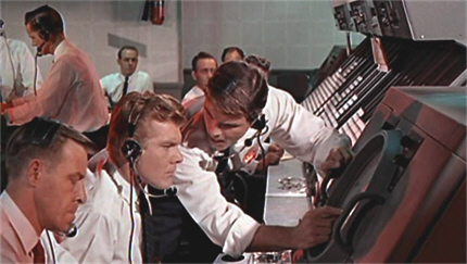 But even if we manage to part the smokescreen of its character material, The Crowded Sky’s disaster is oddly handled, with several dangling plot-ends. For instance— Apparently having set up air-traffic controller Norm’s absence from his post at the moment of crisis, there he is after all, dealing with the situation. But does he deal with it correctly? Are we, for instance, to understand that he was distracted—and perhaps should have order TS-17 to change direction as well as dive?