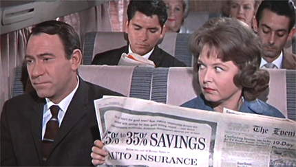 Meanwhile, in the here-and-now, exasperated agent Gertrude Ross is escorting her twitchy, self-absorbed method-actor protégé, Bob Fermi, from Broadway to Hollywood (I’ve seen references to Brando, but to my eyes Tom Gilson is “doing” Dennis Hopper); while lone passenger Samuel N. Poole exchanges ominous looks with Barnett to the point that we begin to suspect he’s here to do something stupidly dangerous and make the disaster exponentially worse, à la Sidney Blackmer in The High And The Mighty, but whose back-story turns out to be boring and quite unnecessary. (If it’s supposed to make us think Barnett is a nice person, mission not accomplished.)