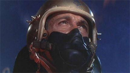 Less encouraging is Heath’s explanation of eject procedure. Invited to ask questions, McVey hesitates, but then brings up Heath’s accident record. He hesitates in turn, then admits his culpability: that while the bomber was at the wrong altitude, he had been distracted, thinking about his war service—and he reacted as he would have done in combat, pulling up so that the bomber struck his underside and he was able to eject, rather than sacrificing himself by diving into the underside of the bomber, as he should have done.