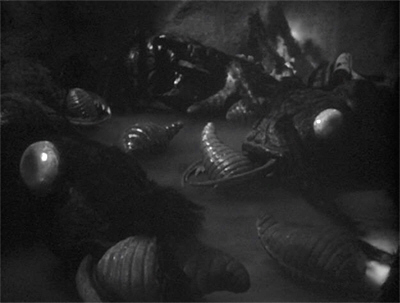 The other point of importance here involves the technician whose task is to make a plaster cast of the strange print in the sand. (I say “technician”— Of course the whole team rolls up wearing suits and ties and hats and polished shoes!) When Peterson asks what he makes of it, he has no answer but a blank look and a shake of the head. This willingness to admit ignorance is unusual, and it paves the way for the introduction of the film’s real experts, who are handled by the script in a manner that is remarkably refreshing.
