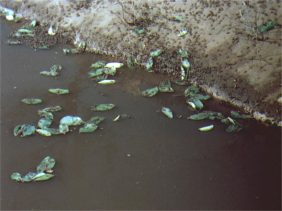 But cometh the dawn, cometh the ants; and we get some scary footage illustrating exactly what they can do. (Some of which you’ll probably recognise, as it ended up in a number of other films including Atlantis, The Lost Continent.) Among other things, they strip the leaves from trees, and use them as rafts to cross the moat. Observing this, Leiningen orders the dam to be signalled, to release more water. However, the guy left on guard there has fallen asleep…unfortunately for me.