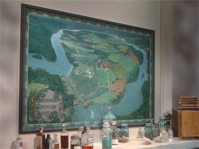 Taking advantage, Leiningen leads Joanna on a tour of that part of his plantation closest to the house: the dam that holds the river back, where the land has been claimed and cultivated; the irrigation moats; the plantation itself; the drying houses were the cocoa-beans are prepared and packed.