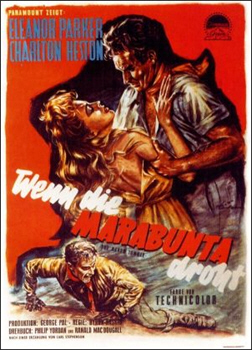 (Paramount did use the word on their own poster too, as seen above; but its juxtapositioning with Charlton Heston and Eleanor Parker in a clinch suggests rather some sort of exotic sexual position.)