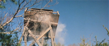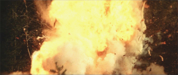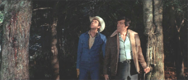 Kelly demands “men from Washington” – State or D.C., it isn’t clear – but Kittridge, not wanting things “blown out of proportion”, retorts that Kelly already has enough men, setting up a confusing segue to another cherished cliché, the “idiots on the loose” sequence, as whooping hunters pour into the park at Kittridge’s behest. One of them encounters our killer POV shot; we also see some real live bear feet (black ones, though), and are given our first, very brief, look at a real live whole bear shortly after.