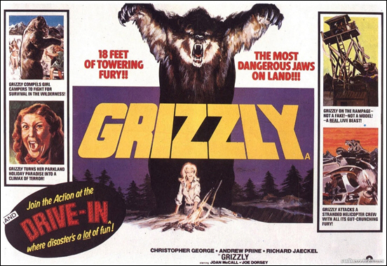 Which brings us to Grizzly, the first, the best and the most blatant of all the many rip-offs of Jaws—and a film that allowed William Girdler to open his eyes very wide, blink them innocently, and say, “But that’s about a shark in the water; this is about a bear in the woods. How could it be the same movie?”