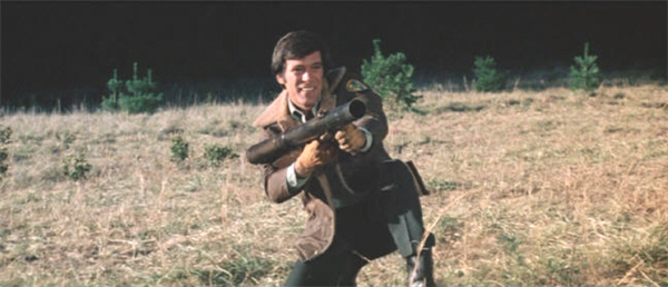 And second, there’s The Triumvirate. Much of Jaws’ greatness has nothing to do with its shark, but instead springs from the three immaculate central performances from Roy Scheider, Robert Shaw and Richard Dreyfuss; from the characters that those men created, and the dynamic between them. Grizzly also has a central trio of bear-hunters; and while Christopher George, Andrew Prine and Richard Jaeckel may not be Scheider, Shaw and Dreyfuss, they are three solid, professional actors who interact in a way that suggests that they enjoyed this shoot, and who do their best to put this thing over…and to pretend that we haven’t all seen this film before under another name.