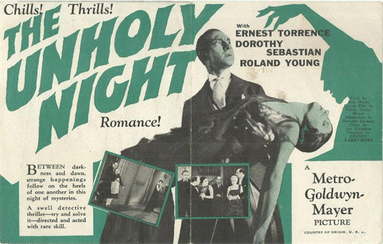 Which brings us to The Unholy Night, a film whose significance today – aside from the appearance in an unbilled supporting role of a future star – lies chiefly in the fact that it seems to be sound cinema’s earliest surviving attempt at a true horror movie.