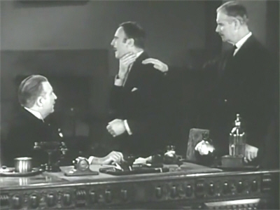 Less welcome is the film’s tendency to fill potential dead air by dragging out its dialogue scenes to unendurable length, as with the first scene at Scotland Yard, during which his lordship is permitted to give a tediously circumlocutory description of what went on in the fog. I have a lot of affection for Roland Young as an actor, and given the right kind of material, he could be wonderfully funny. This sequence, however, as well as later ones in the film, is predicated upon the mistaken assumption that anything that comes out of his mouth is automatically funny, and the more of it, the better.