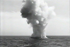Ted, Lois and Grant converge at the lab, then head together for the beach, from where King has already launched himself in that inexhaustible row-boat. He dives down to somewhere near the light beam and plants his high-tech bomb, but is caught by the Phantom before he can get away. Intriguingly, his struggles indicate that he didn’t intend a suicide…but, needless to say, he gets one anyway. The bomb goes off, and scientist and creation both go up; as indeed does the activated deposit of submerged uranium. It’s a well-known scientific fact that radioactivity is destroyed by a simple explosion, rather than, say, being dispersed over an increasingly wide and dangerous area…