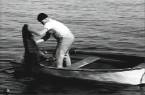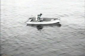 The Phantom From 10,000 Leagues opens upon a dead flat stretch of water upon which very little is happening, thus masterfully setting the tone for everything that is to follow. A fisherman in a small row-boat, with the entire ocean to choose from, manages to stop directly over a strange beam of light that, while he notices it, causes him no particular concern, nor inspires him to choose a different fishing spot; he proceeds to cast his nets.