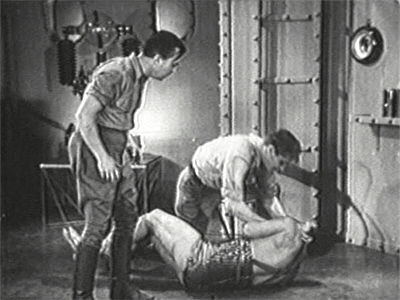 Bruce overhears this, and insists that his instrument will not fail—prompting scowls and sulkiness from the others (!). Indeed, just at that moment, Bruce utters a cry of triumph—but at the same time, the generator powering his instrument begins to overheat and burn out, then goes out with a bang.