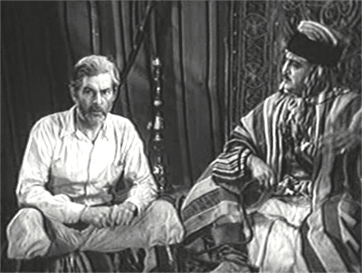 A message gets brought to Ben Ali, who leaves the tent—allowing Butterfield to explain to the others what will happen if the slave-trader finds out about Manyus and the giants. Of course it’s already too late, as Manyus and Hugo (and Colton and Gorzo, but they don’t rate a mention) have just been brought into the camp. Ben Ali is giving Hugo an impressed up-and-down when Colton begs him for a private audience. Granted it, he blurts out exactly what Butterfield least wanted Ben Ali to know—including the fact that Manyus is, “The greatest scientist in the world!”