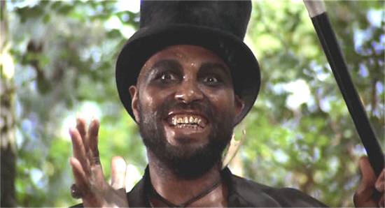 But the deal is struck. The Baron cries out, “AWAKE!”, and in response (in a scene suggestively similar to the graveyard set-piece in Zombie) the occupants of the graves begin to claw their way out of the earth, rising to their feet to pay homage to their master…