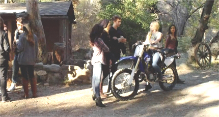Another irritating conceit follows hard, as Hailey takes her trail bike out for a ride; and honestly, the thing is so obnoxiously loud, it comes across like she’s deliberately making as much noise as possible while tearing through the town. She ends up in the surrounding woods and, hearing music – somehow, over her own din – follows it to the local teens’ hangout.